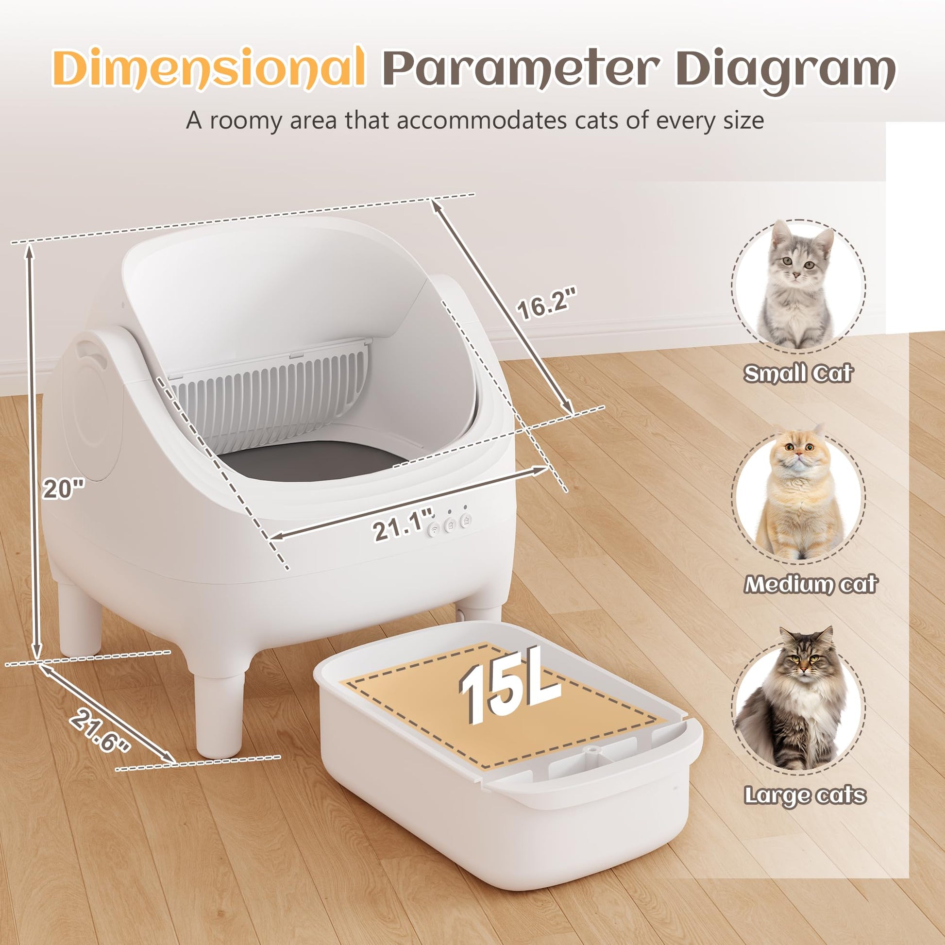 Electric Automatic Self Cleaning Cat Litter Box, Open-Top Design, Easy Odor Control, Smart APP Control, 15L Large Waste Bin, Includes Trash Bags