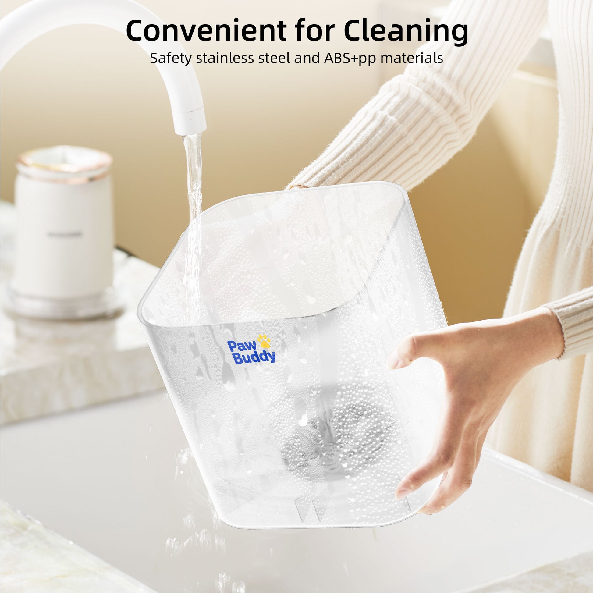 - Clean More Thoroughly ( Detachable ) : The auto cat feeder (BPA-Free) has a removable food tank and stainless steel bowl. Individually disassembled Food Tank can be cleaned more thoroughly. Stainless steel cat bowl can be placed in the dishwasher for cleaning. These removable designs make eating more hygienic for your pet.